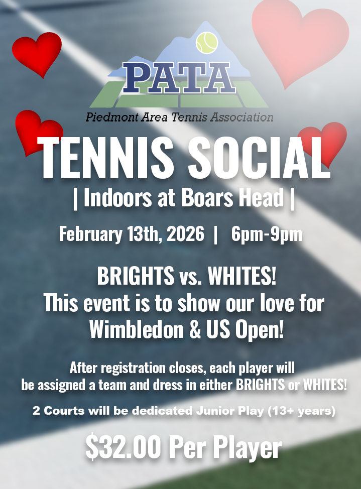 PATA offers many tennis opportunities for adults and high school players. All are welcome to participate in our tournaments, socials and other programs added throughout the year. See below for upcoming events!