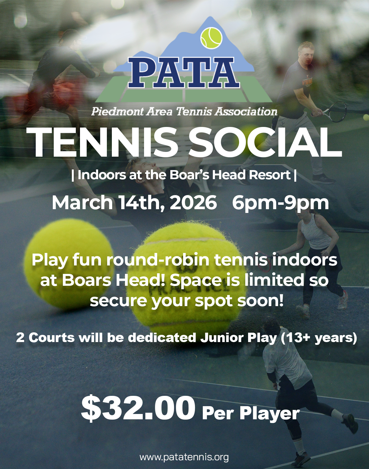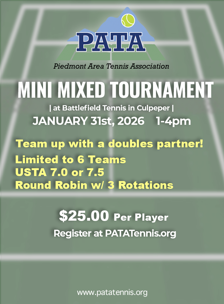 January 31st, 2026: PATA Indoor Tennis at Battlefield Tennis - Registration Closed